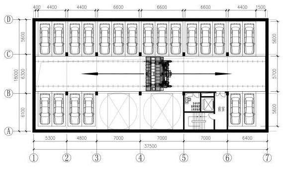 采用巷道堆垛機將搬運機器上的車輛水平垂直移動到存車位,通過存取機構(gòu)存取車輛。出入口通常設置垂直升降機,這種車庫自動化程度很高,且全部封閉式建造,車輛安全性好。該車庫類型主要適用于大型密集式存車。
