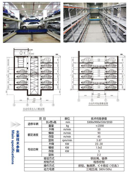 采用在同一層上用搬運(yùn)臺(tái)車或起重機(jī)平面移動(dòng),或使載車板平面橫移實(shí)現(xiàn)存取停放車輛,亦可用搬運(yùn)臺(tái)車和升降機(jī)配合實(shí)現(xiàn)多層平面移動(dòng)存取停放車輛。此種類型的設(shè)備大多為多層平面移動(dòng)類,這種車庫可以建成大型化、自動(dòng)化的車庫、容車密度大、存(取)車快捷,適宜建在大型住宅周圍的地下,對(duì)機(jī)場、車站、繁華商業(yè)中心區(qū)、體育館、辦公樓等區(qū)域也適合。尤其是巷道長度長、層數(shù)不多的地下大容量存車庫,用這種設(shè)備的技術(shù)經(jīng)濟(jì)性較好。
